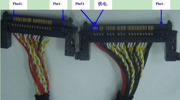 1、120Hz屏不分尺寸大小,需配置2條LVDS連接線 1條51pin,1條41 pin,如右圖;