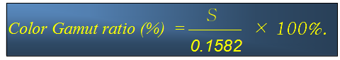 計(jì)算紅綠藍(lán)色坐標(biāo)所圍成的色域面積,越大混色產(chǎn)生的色彩越豐富,色彩越鮮艷。
